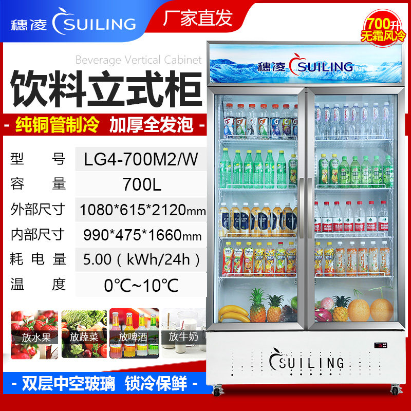 Suiling LG4-700M2W double-door beer beverage commercial air-cooled freezer supermarket vertical display cabinet fresh-keeping cabinet