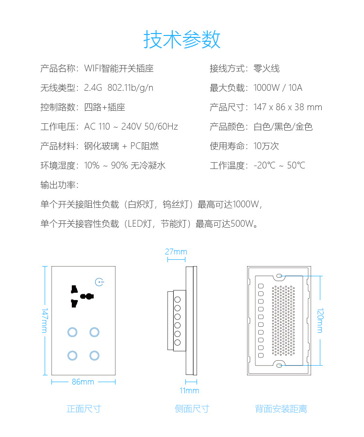10A socket 4-way touch remote control Tuya smart switch panel wall lamp system 146 147 British style