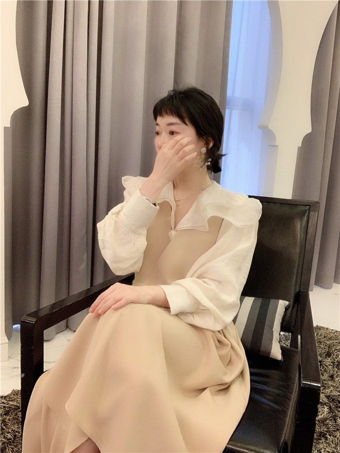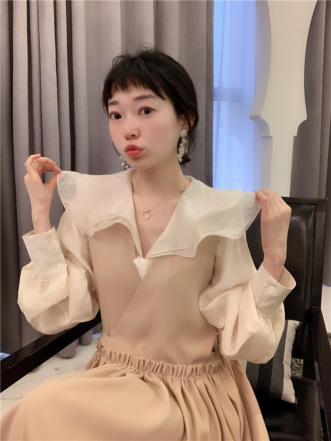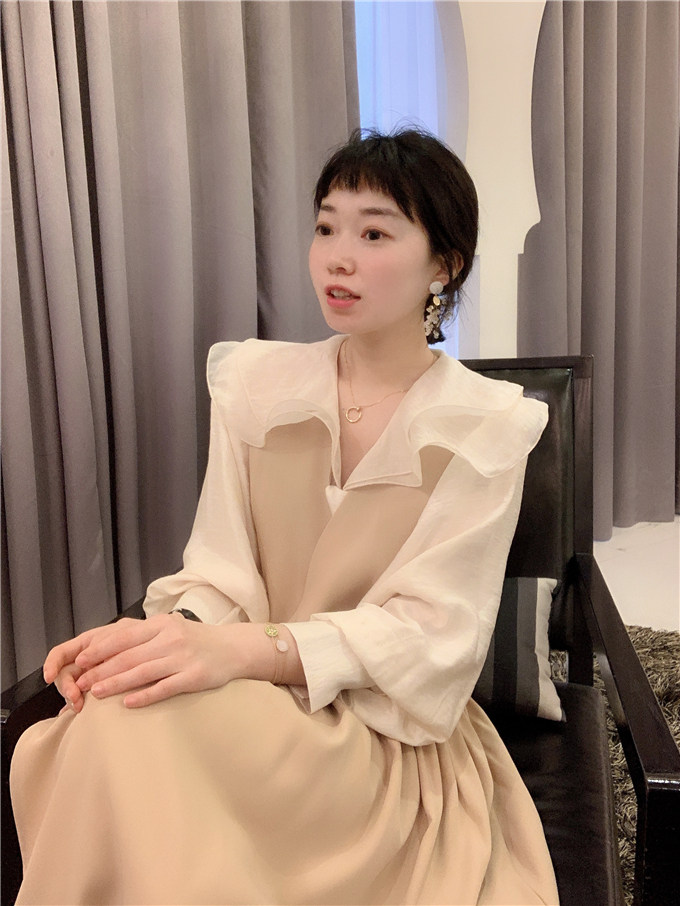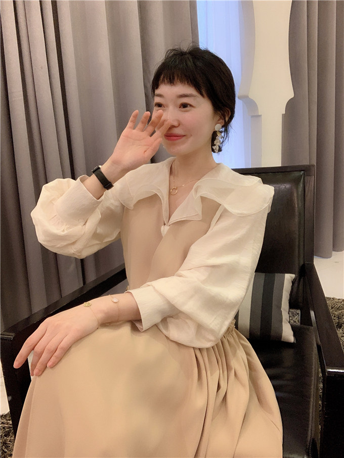 BORAKOO Korea Dongdaemun So Gentle Hanbok Style ~ Apricot V-neck Bud Vest Dress