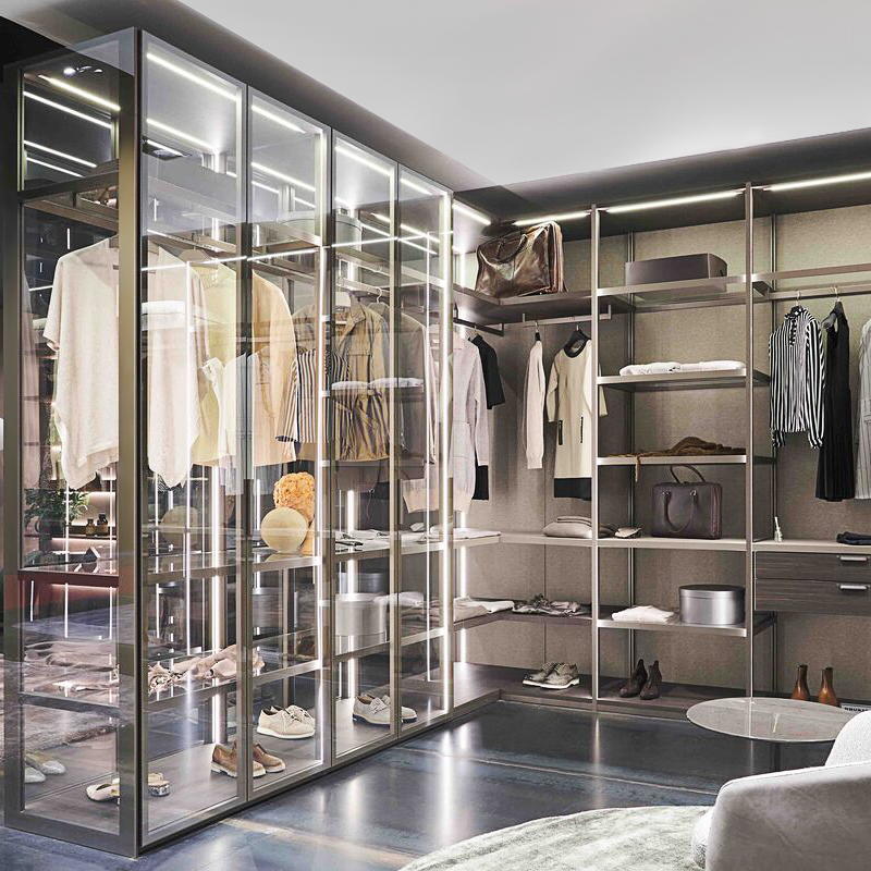 Modern minimalist glass wardrobe wardrobe whole wardrobe flat door bedroom open cloakroom whole house furniture customization