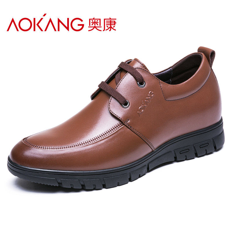Aokang men's shoes spring height increase men's shoes 6cm business casual leather shoes men's casual shoes leather invisible height increase shoes