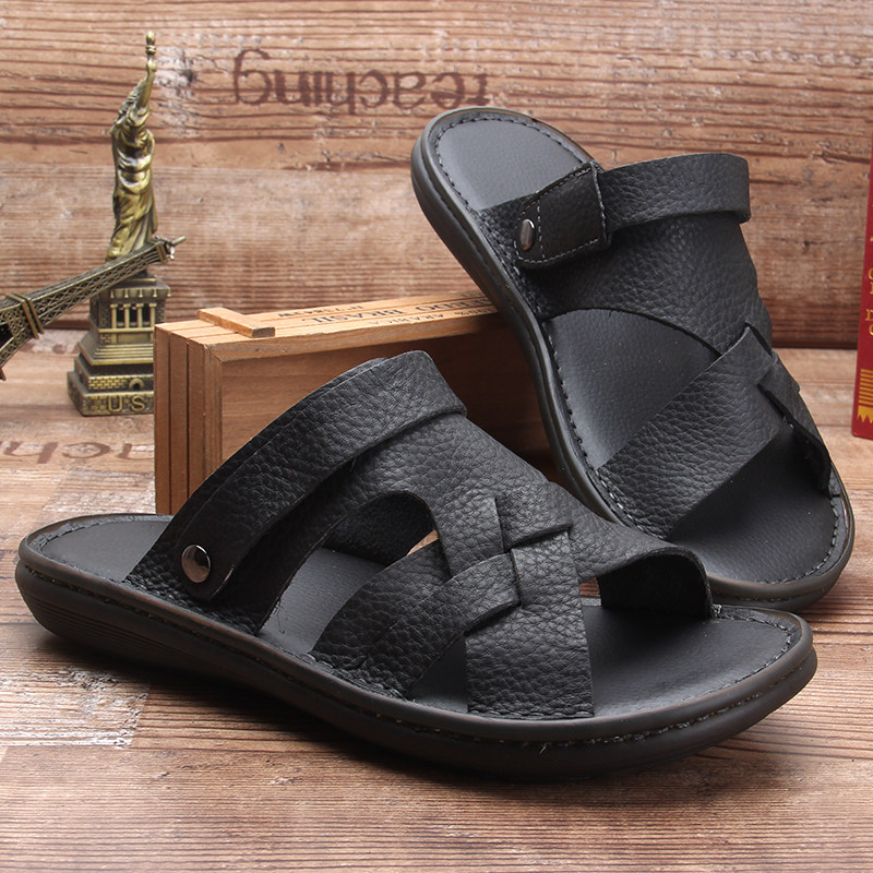 Sandals men summer new leather wear middle old soft sole anti-slip leisure daddy sandals dual use
