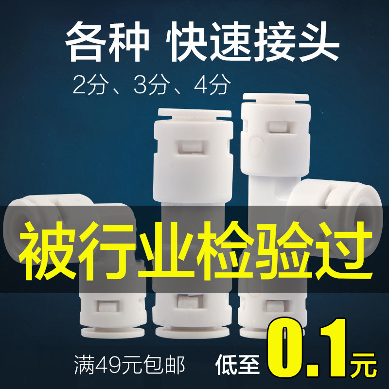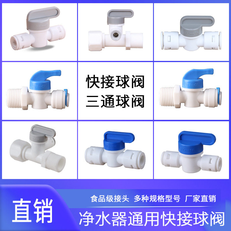 Water purifier 3-point connector water pipe conversion valve water filter quick-connect straight-through elbow 2-point double-pass baffle-free blue card