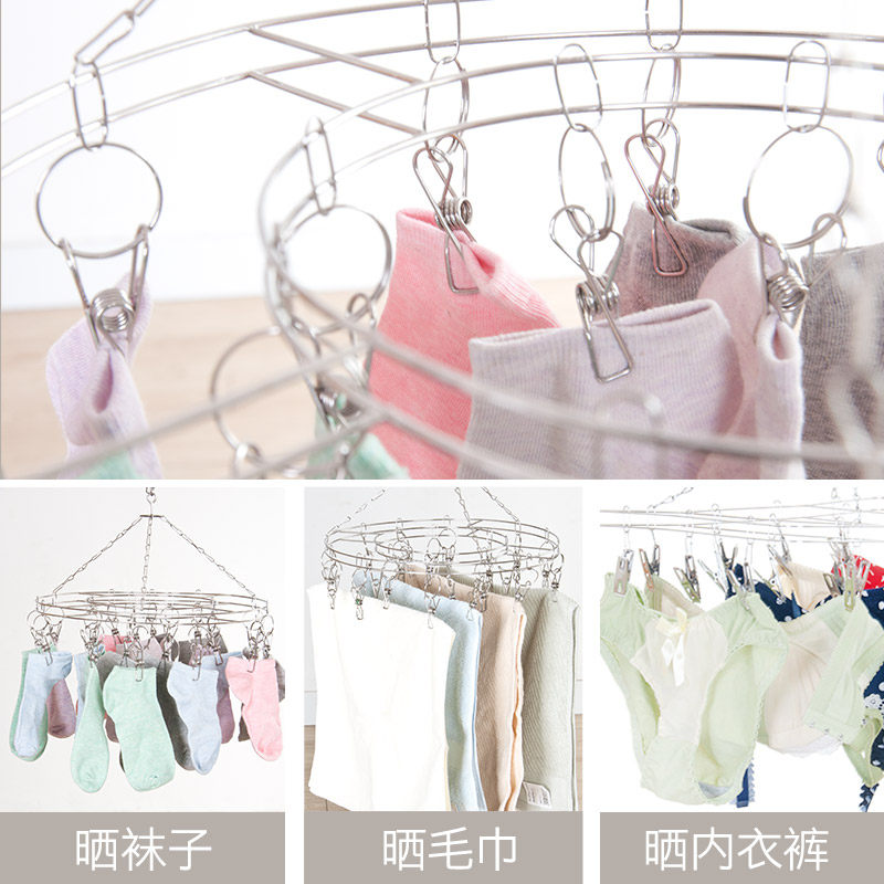 Stainless steel clothes rack Household clothes rack Multi-clip windproof clothes rack Underwear socks multi-functional strong drying rack
