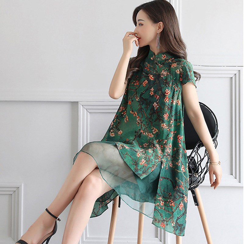 Fat Woman Improved Qipao Chinese Style Large Size Dress Woman Dress 2021 New Hanfu National Wind China Wind Chinese Dress Summer