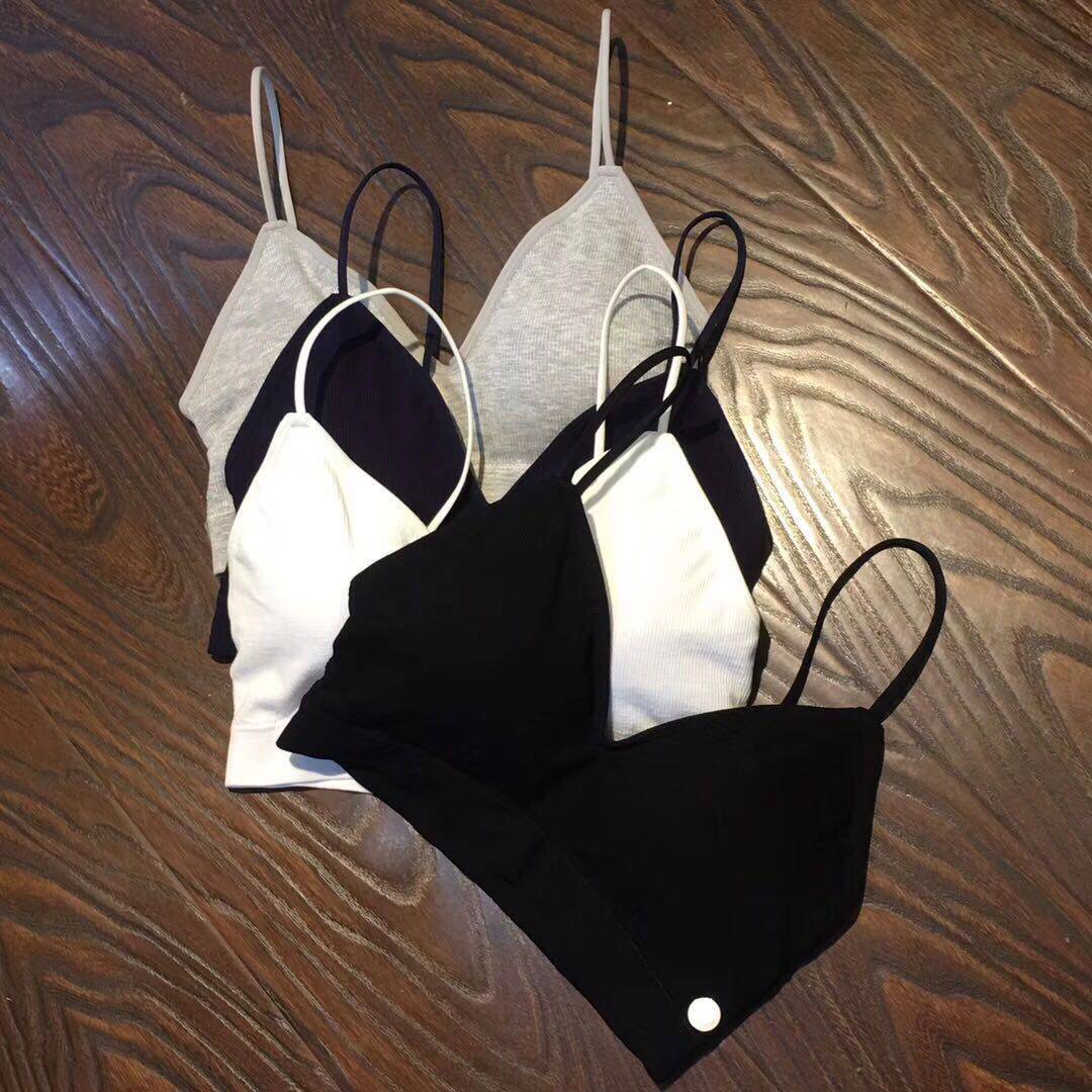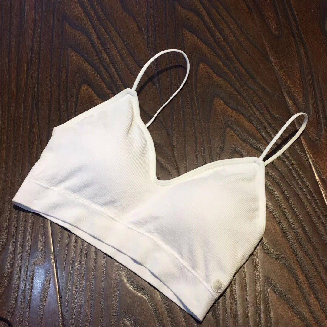Beauty Back Underwear Women's Vertical Striped Cotton No Marks fine shoulder strap Meal back lingerie Breasted Little Vest Wrapped in chest Summer thin