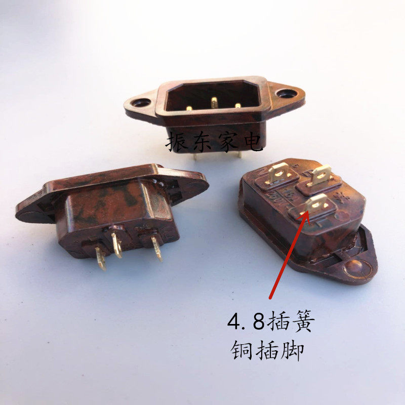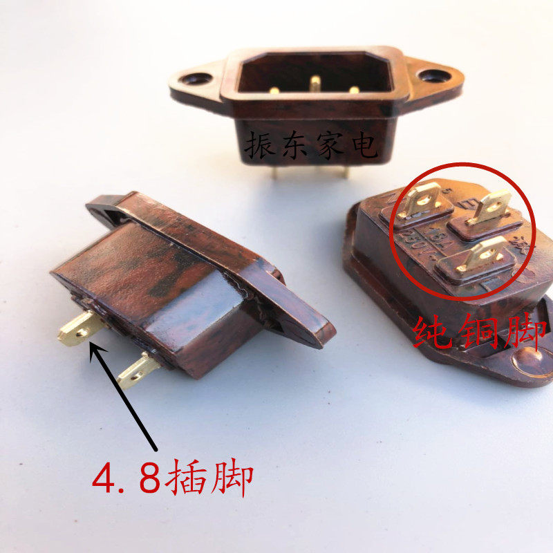 Electric hot pot socket socket accessories copper foot rice cooker electric pressure cooker power socket three holes 3 feet Bakelite 100pcs