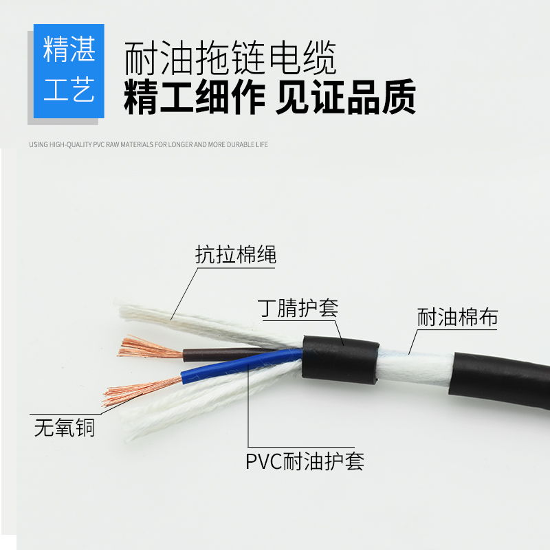 Oil-resistant cable Soak oil anti-oil pollution soft towline cable 3 million times RVVY2 3 5-core waterproof and wear-resistant national standard