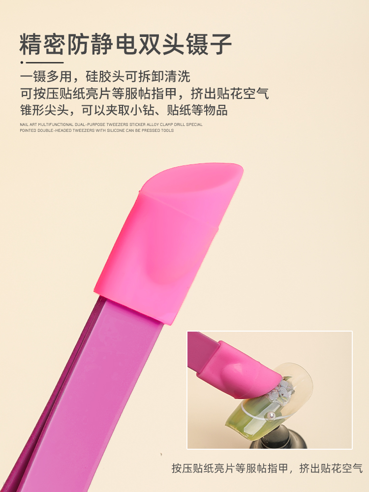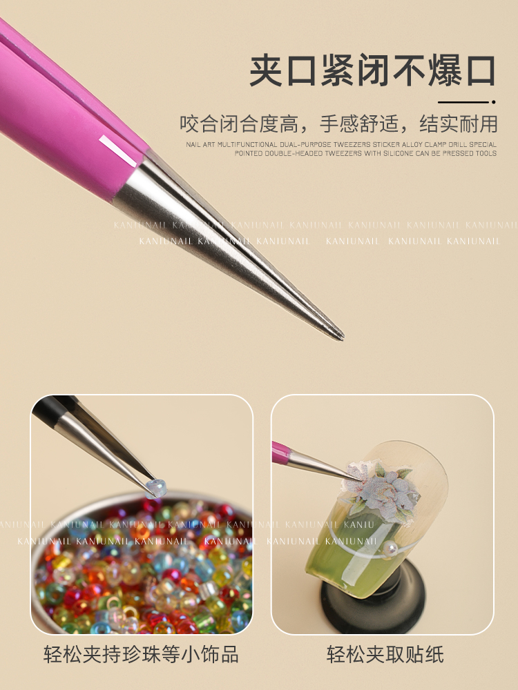 Medecor multifunctional dual-use tweezers sticker alloy clamping drill special pointed double head tweezers with silicone press tool
