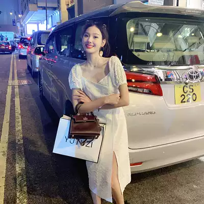 Women's 2020 spring and summer new sexy dress Korean version of temperament high waist split Short Sleeve V collar knee ins skirt