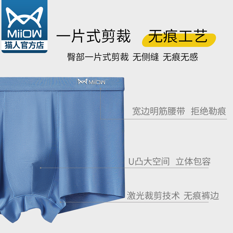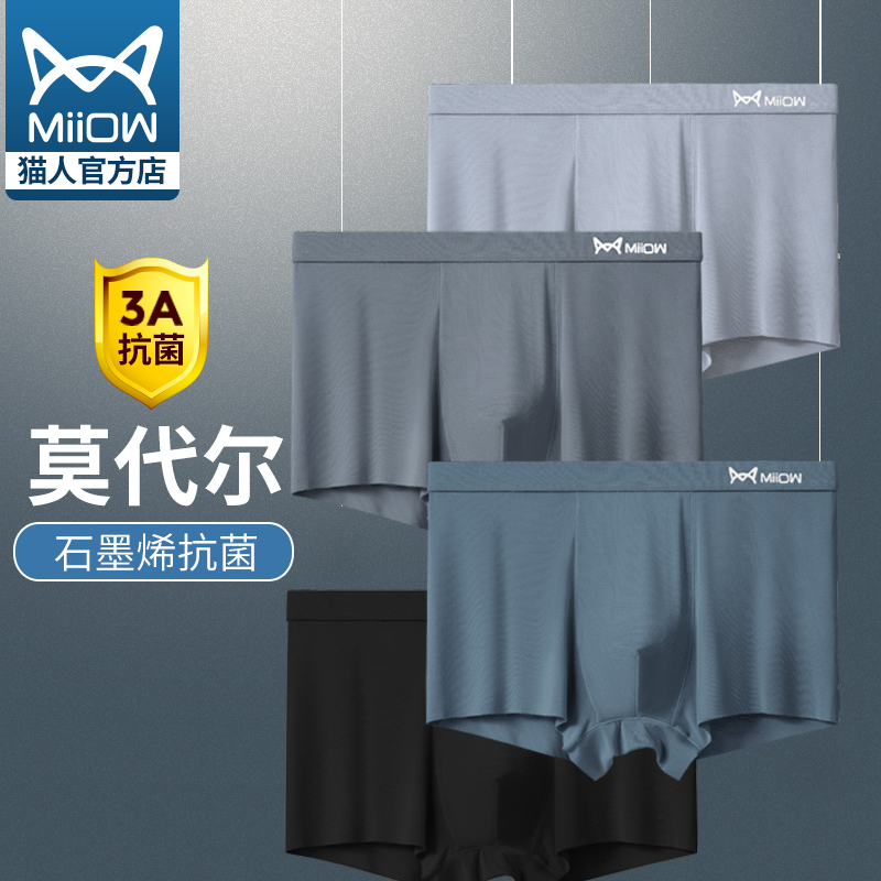 Cat Man Underpants Four corner pants Modale High waist loose Large size Large Size Breathable Full Cotton Bacteriostatic Thin corner pants