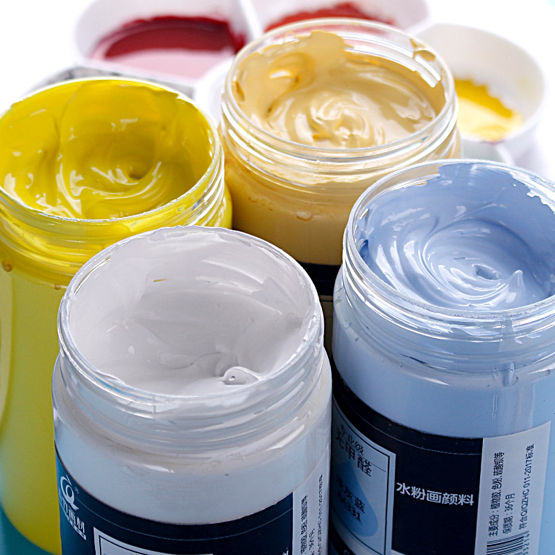 Green Bamboo Drawing Material Water Powder Paint Titanium White Fruits Jelly Paint With Slope Yellow Lemon Yellow Light Grey Blue Water Powder Painting Paint Canned Bottled single 300ml Complementary loading of the slope