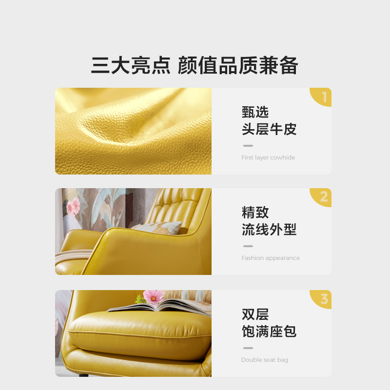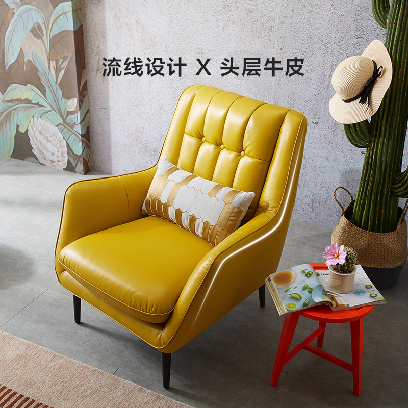 Lin's wood industry modern minimalist living-room real leather sofa Nordic small family Leather Sofa Furniture RAM1Q