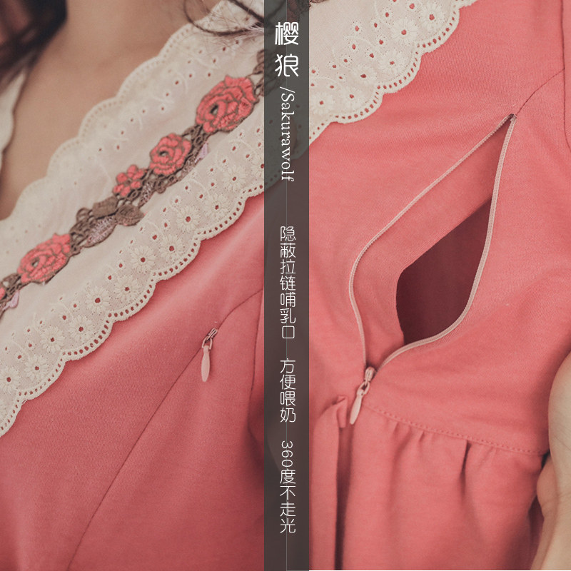 Cherry Wolf Postnatal Month Pregnant Woman Sleepwear Woman Sleepwear Woman Spring Autumn Season of Pure Cotton Pregnancy Pyjamas pregnancy Pregnancy Nursing Home Clothing