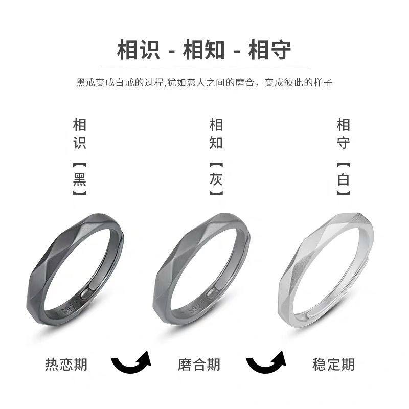 Multi-faceted (open) (male black female white) brand packaging long-distance love pair ring long-distance love couple necklace everlasting gift box❤Confession recommended multi-faceted (open) (male black female white