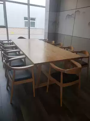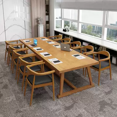 Nordic solid wood office desk and chair Log conference table long table Modern minimalist creative negotiation table workbench long table