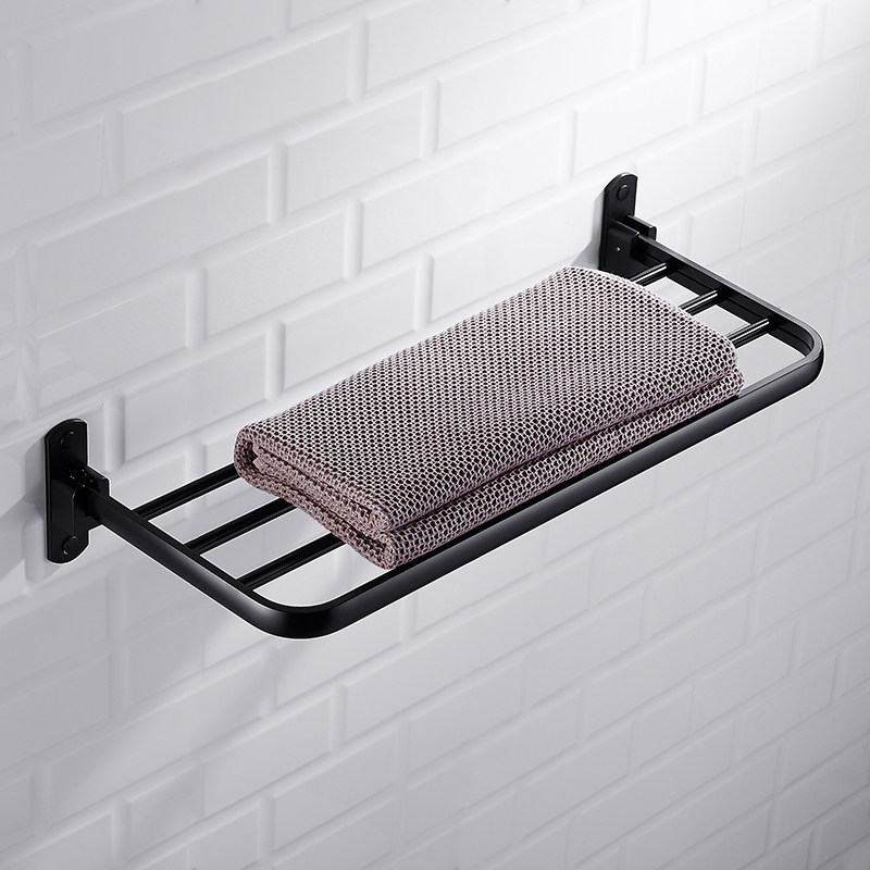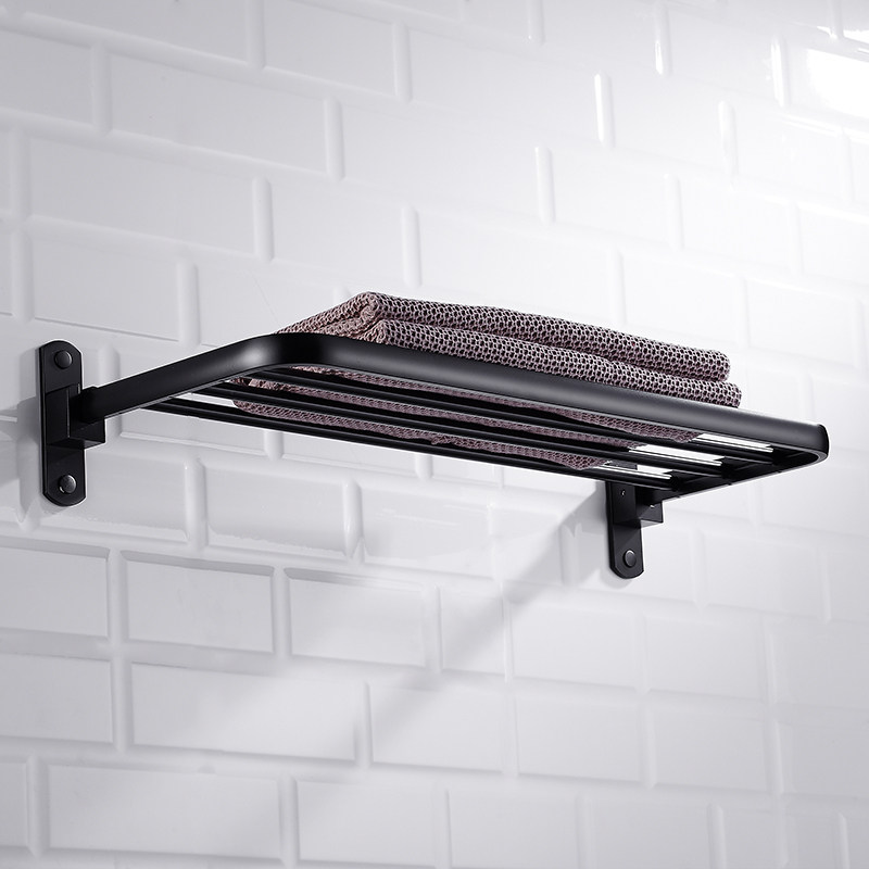 Nordic bathroom shelf Space aluminum free hole storage towel rack Black invisible powder room folding bath towel rack