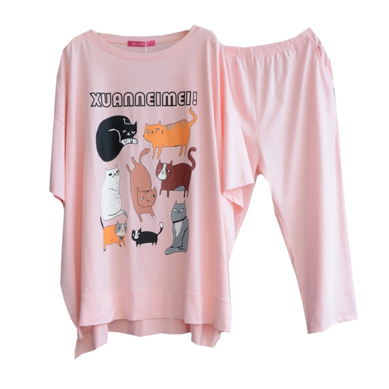 Fat MM female summer cute cat big size large plus fertilizer increase 200 jin 300 jin cotton pajamas nightdress suit