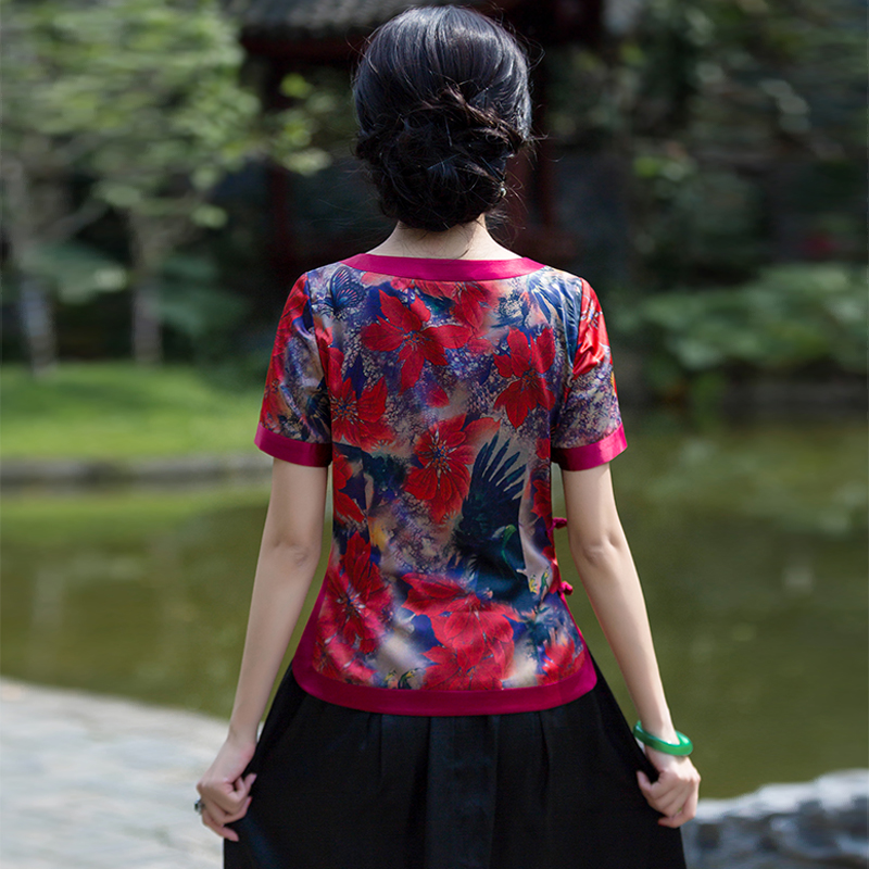 Huahua Classic Improvement Qipao Blouse Blouse Blouse Women's Fashion Short And Round Collar Display Slim Country Wind Women's Disc Button Blouses Women's Fashion Summer