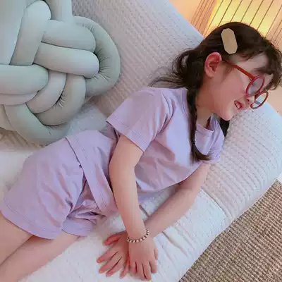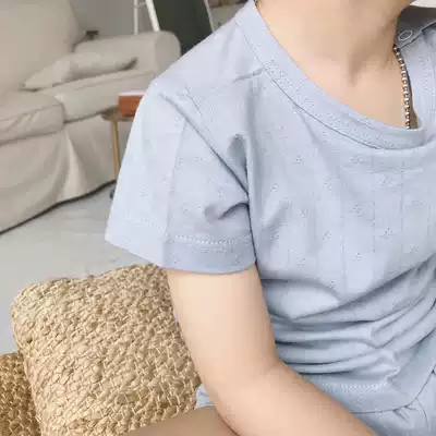 Summer Baby Cotton solid color home clothing set Boys Girls jacquard hollow pajamas children suction air conditioning clothing thin