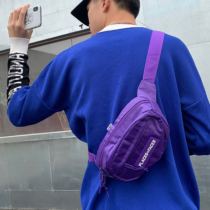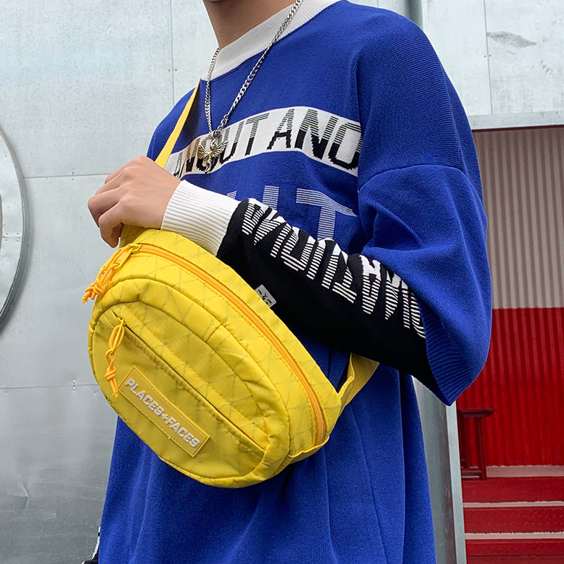 Japanese and Korean fashion letters reflective waist bag men and women trend chest bag pineapple bag casual sports bungee bag small cycling bag