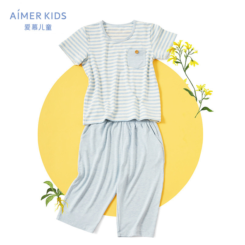 AIMER Children's Home Boy Boy Baby Boy Summer Short Sleeve Pyjamas 50% Sleeping Pants Plant Dyeing Fabric