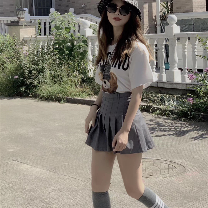 Net Red TB Campus Wind half body suit Pleated Skirt Grey 100 hitch a slim fit with high waist retro half dresses female spring