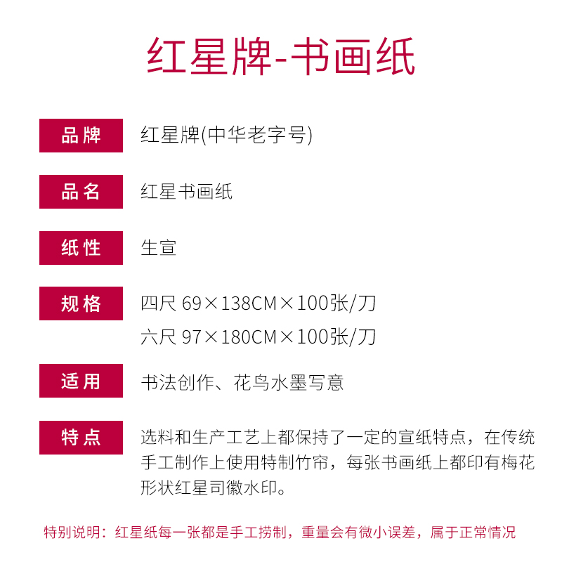 Red Star rice paper flagship store specializes in Red Star brand painting and calligraphy paper, Jing County, Anhui Province, 46 feet Sheng Xuan Chinese painting special brush calligraphy paper works ink painting practice entry paper beginners official