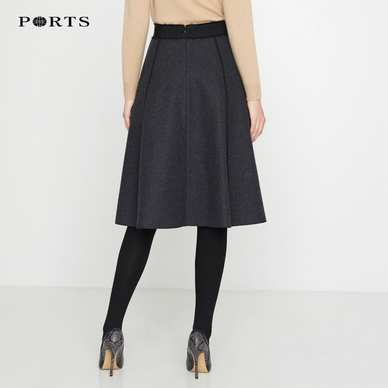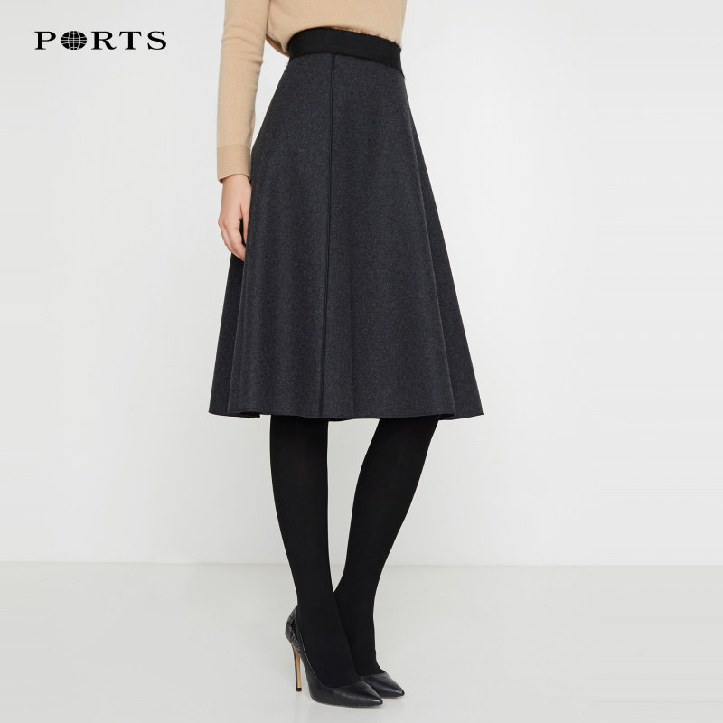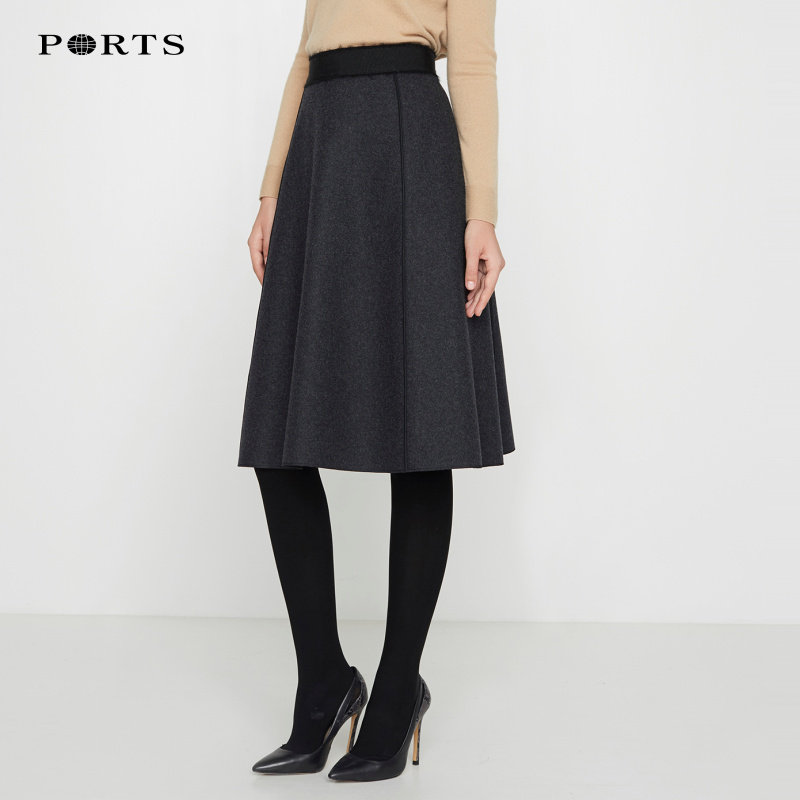 PORTS POZI WINTER WOMEN'S HIGH WAIST COMMUTER A-LINE SKIRT UMBRELLA SKIRT WOOL SKIRT MID-LONG VERSION