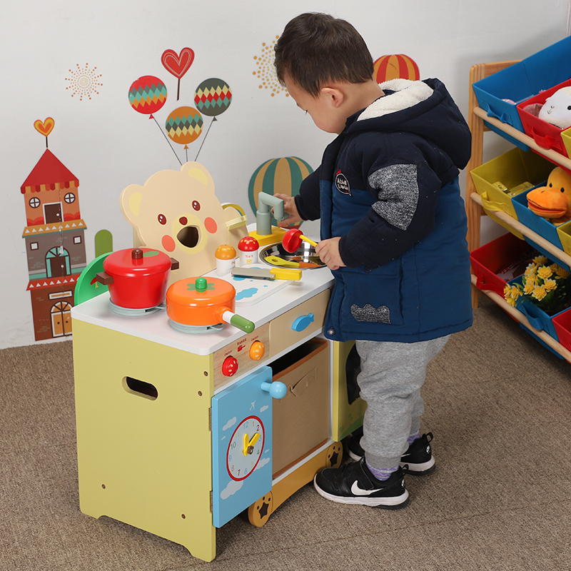 Emulated Home Kitchen Wooden Children Toy Gas Cooker Bench cooking kitchenware 2-3-6-year-old girl gift-Taobao