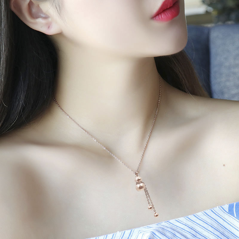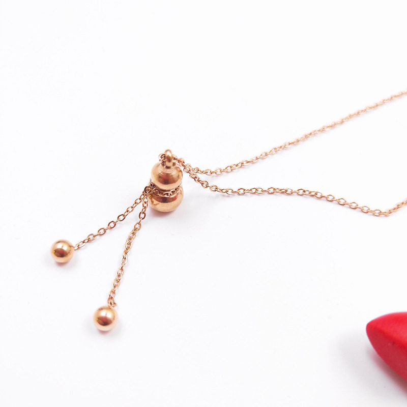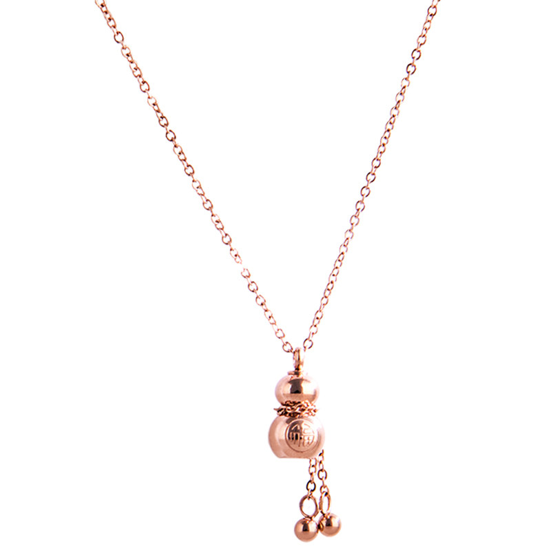 Not off color Korean version 18k rose gold ornament Fuchic plinth 100 lapped titanium steel necklace female tennis red pendant lock bone chain