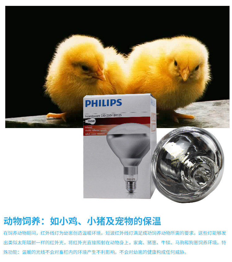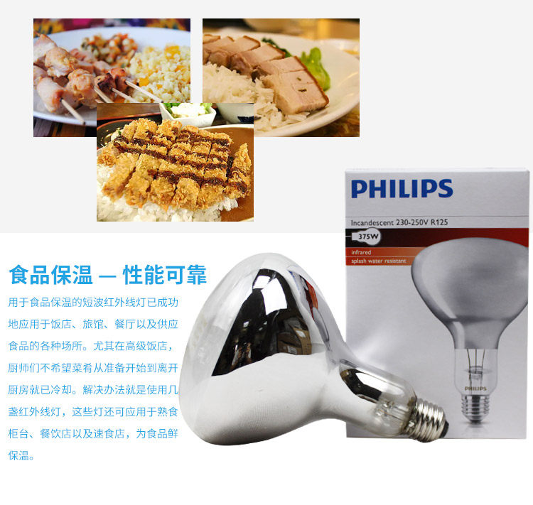 Philips Infrared Insulation Light Bubble 175W 250W 375W for heating food heating and drying bulb