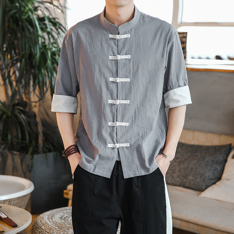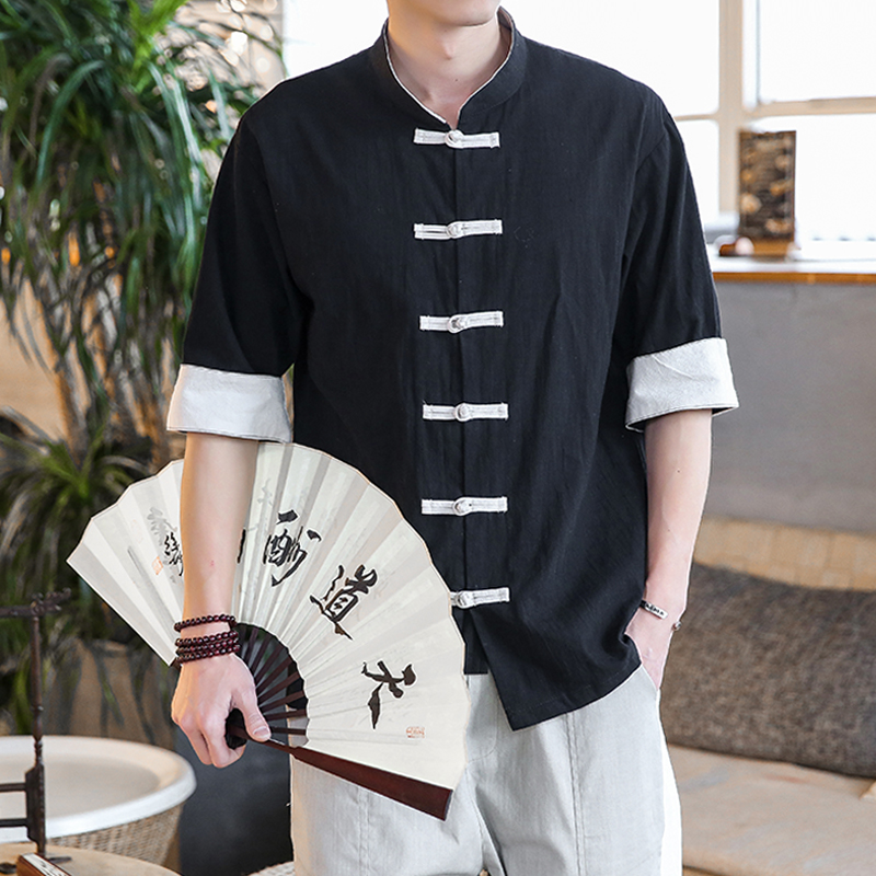 China Wind Short Sleeve Shirt Men's Summer Half Sleeve Tang Dress Man Style Hanfu Pan Button Loose Shirt Suit Tide Jacket