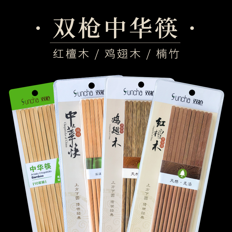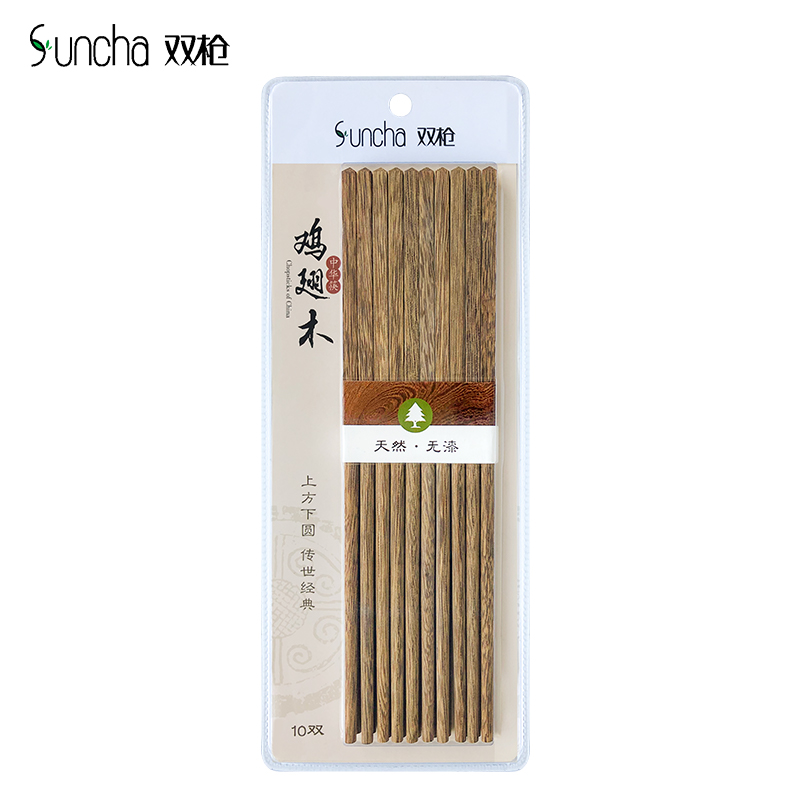 Double gun chicken wings wood chopsticks brief Chinese home solid wood Nangbamboo Chinese chopsticks 10 Double fit traditional no paint red sandalwood chopsticks