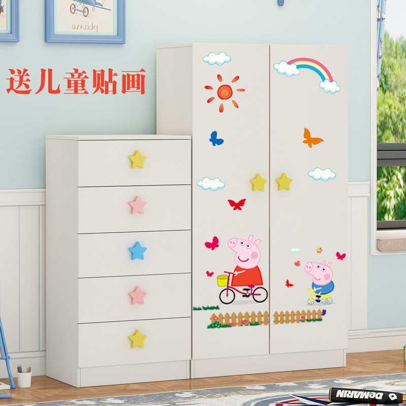 Simple children's wardrobe baby storage combination cabinet girl bedroom wooden wardrobe baby economical two-door wardrobe
