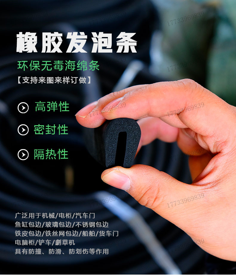U-type rubber EPDM foaming anticollision sealing strip slot glass insert silica gel high temperature resistant wrapping waterproof strip