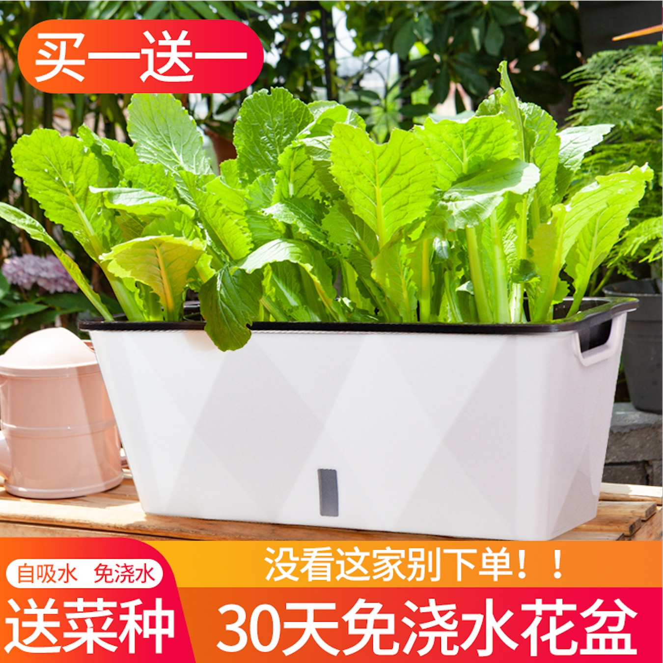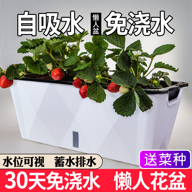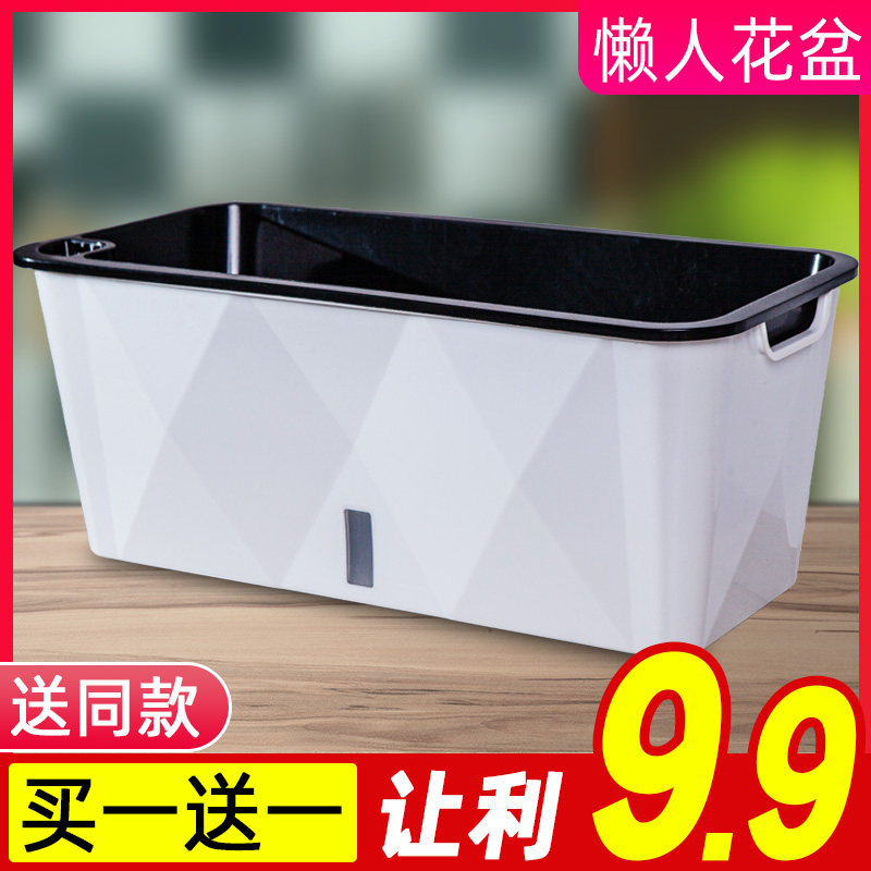 2021 lazy man flower pot self-absorbent water-free cultivation vegetable pot extra large rectangular green grate balcony long strip plastic