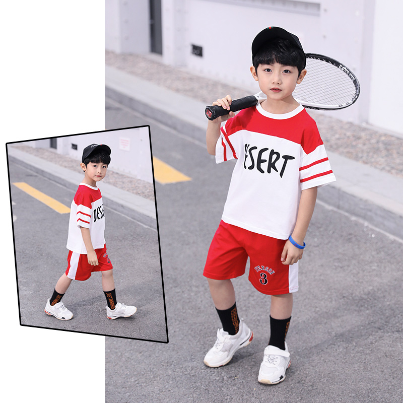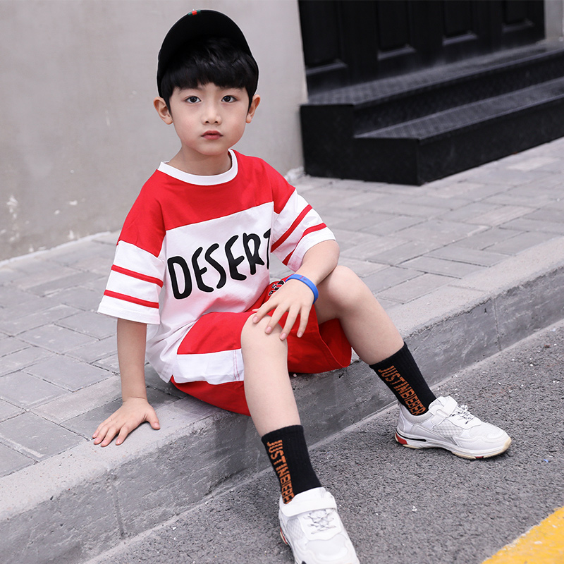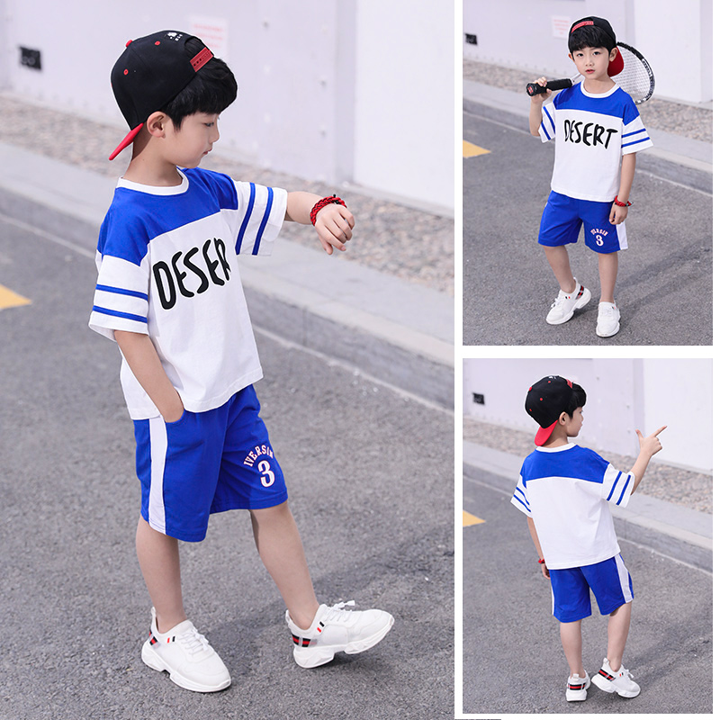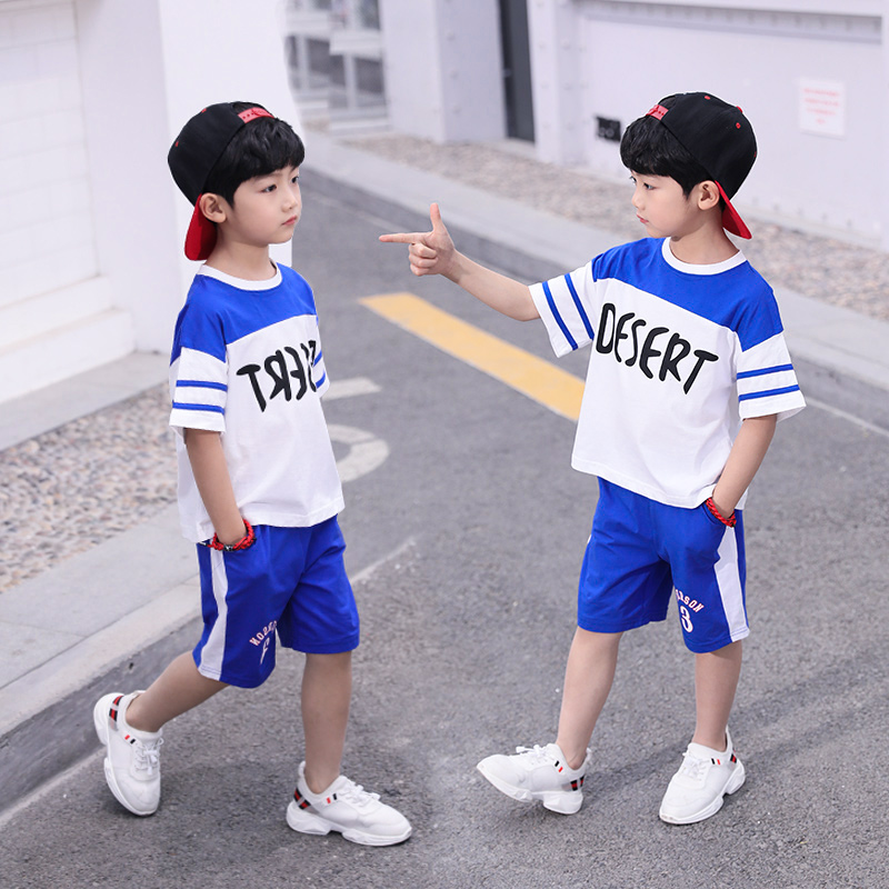 Boy's summer clothing suit 2022 new children short sleeve Ocean Sport Summer CUHK Tong Summer Shuai Qi Tide Clothes