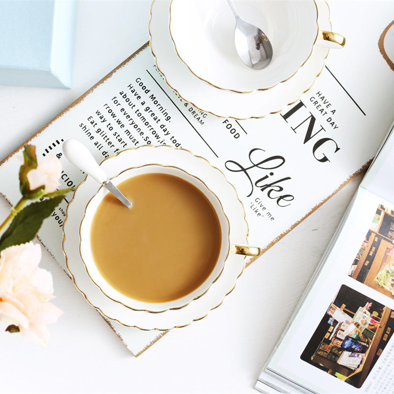Creative Ins brief Bone China Porcelain Coffee Cup Sketching Gold Export European-style Ceramic Afternoon Tea Cup Gift