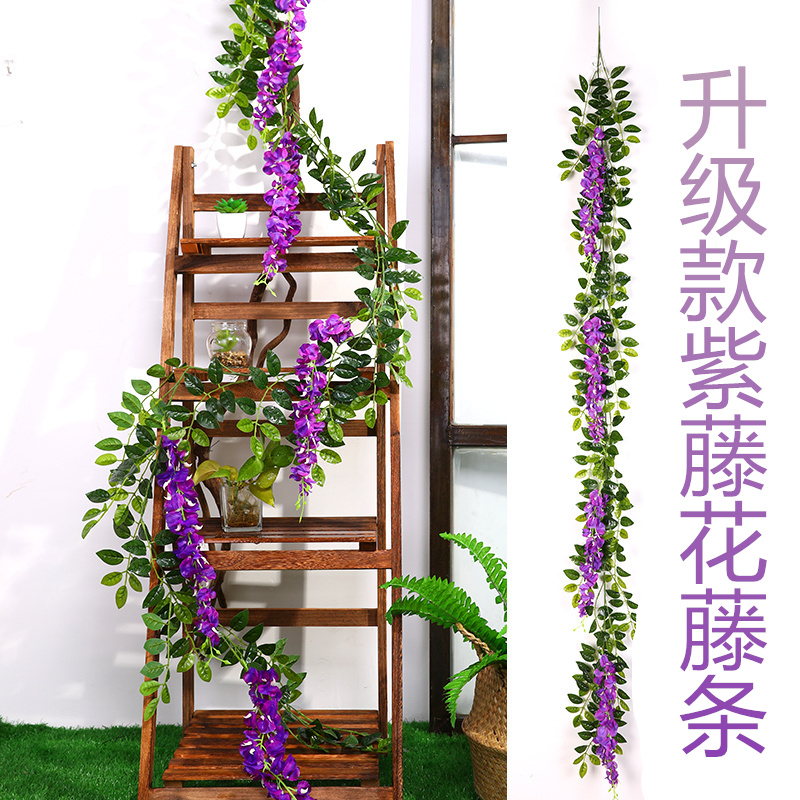 Purple Vines Simulation Fake Flowers Vines Winding Suspended Ceiling Living-room Interior Wedding Celebration Decorative Plastic Flowers Strings of Vine Vegetal Vine