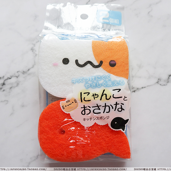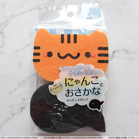 Japan's big innovation DAISO cute kitty fish kitchen with a washing dish pan with cleaning sponge for cleaning the baggy 2
