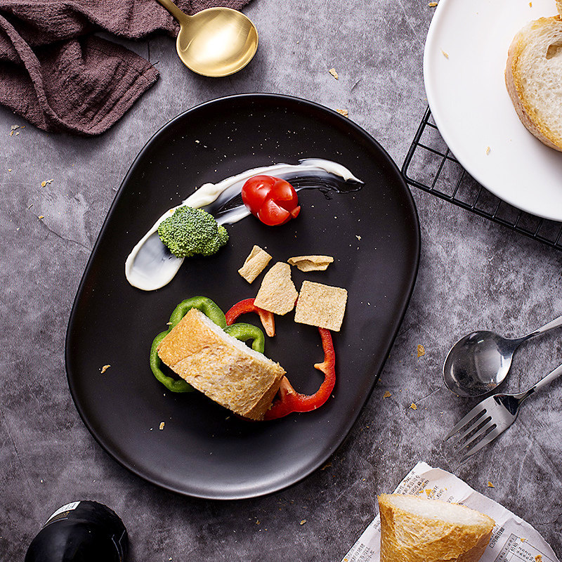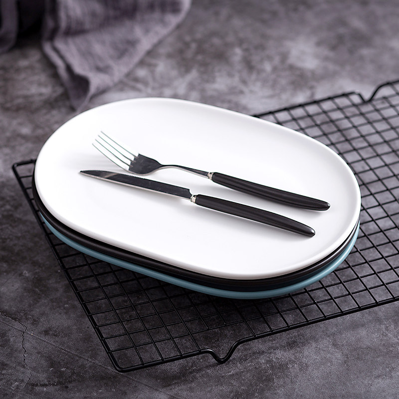 Nordic Ceramic Dishes Western Dining Trays Steak Dishes Creative Home Cutlery Round Matt Binaural Breakfast Dessert Pan