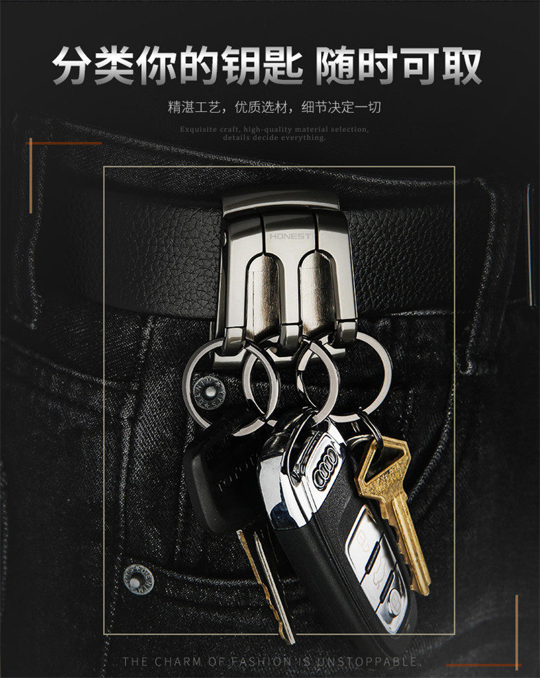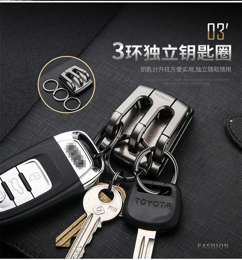 Three-buckle three-ring wearing leather strap key button male waist hanging pants with belt lock spoon buckle father boyfriend daddy waist type pendant