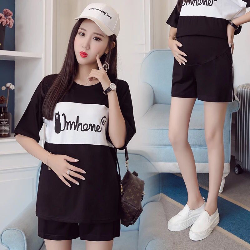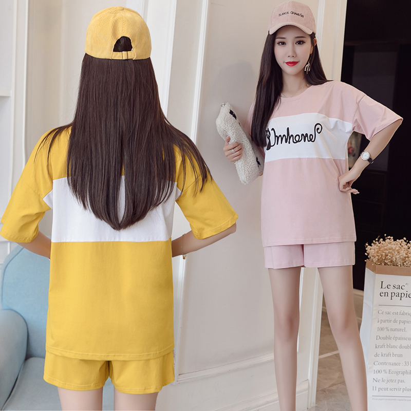 Pregnant woman summer clothing suit stylish style 2022 new short sleeves T-shirt loose sports casual child care pants two sets summer