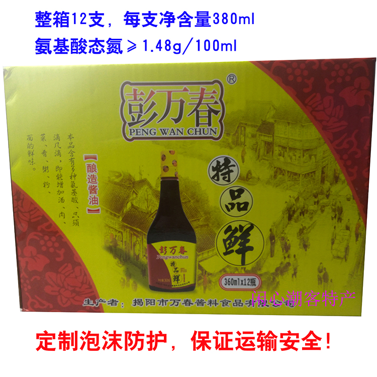 Peng Wanchun's special fresh soy sauce, traditionally brewed, naturally sun-dried, rich in original juice, delicious and delicious, Jieyang specialty