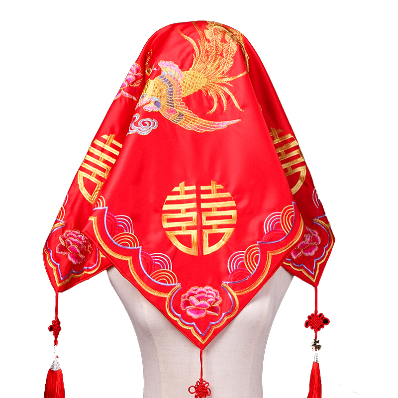 Wedding red hijab (love hi character) Fu character Xiangyun (red hijab) Dragon and Phoenix Chengxiang tassel (red hijab) wedding red hijab (golden dragon and phoenix)