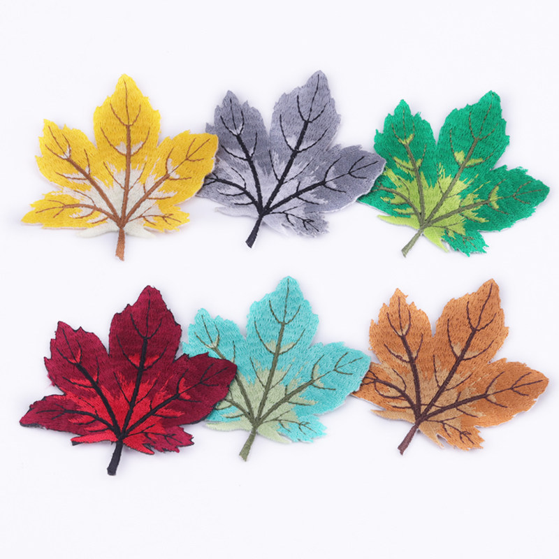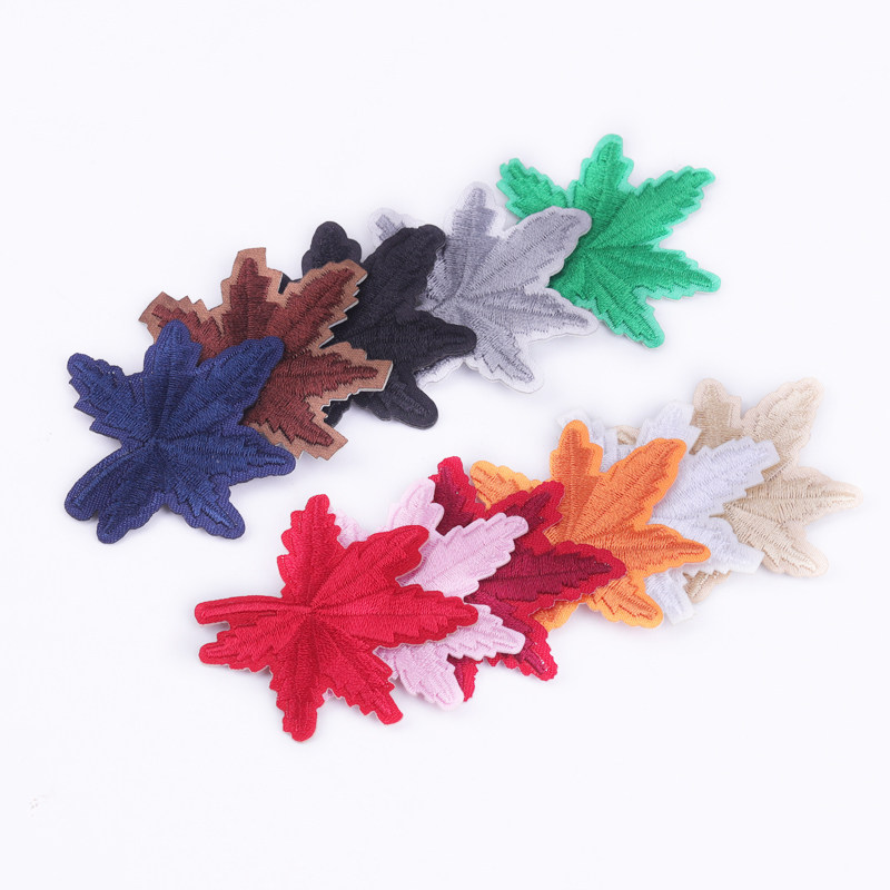 Cloth patch patch clothes pants decoration repair hole decal Full embroidery leaves maple leaf patch with adhesive
