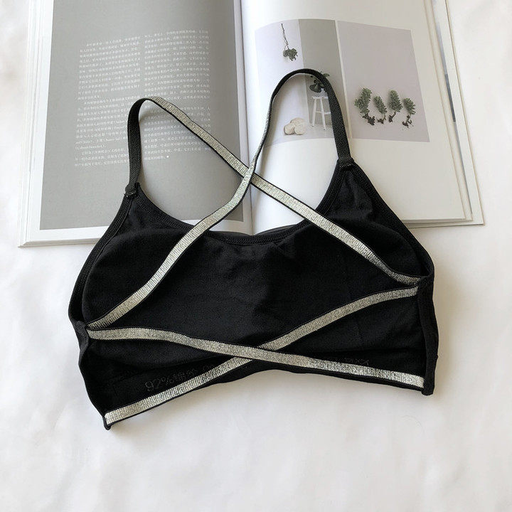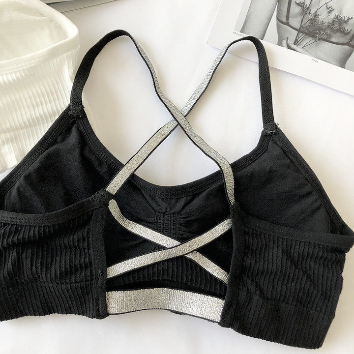 Summer underwear knitted sports vest girl running yoga without wearing bra cross beautiful back sling tube top