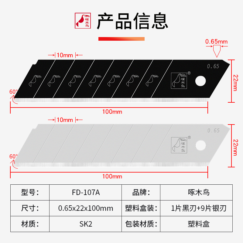 Woodpecker Meatwork knife sheet FD-107A 22mm large number 0 65mm thick heavy cutting blade conveyor belt finishing-Taobao
