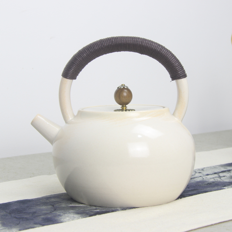 Pottery pot kettle soda glaze mute black crystal furnace for tea Japanese-style kung fu tea set handmade beam pot ceramic teapot
